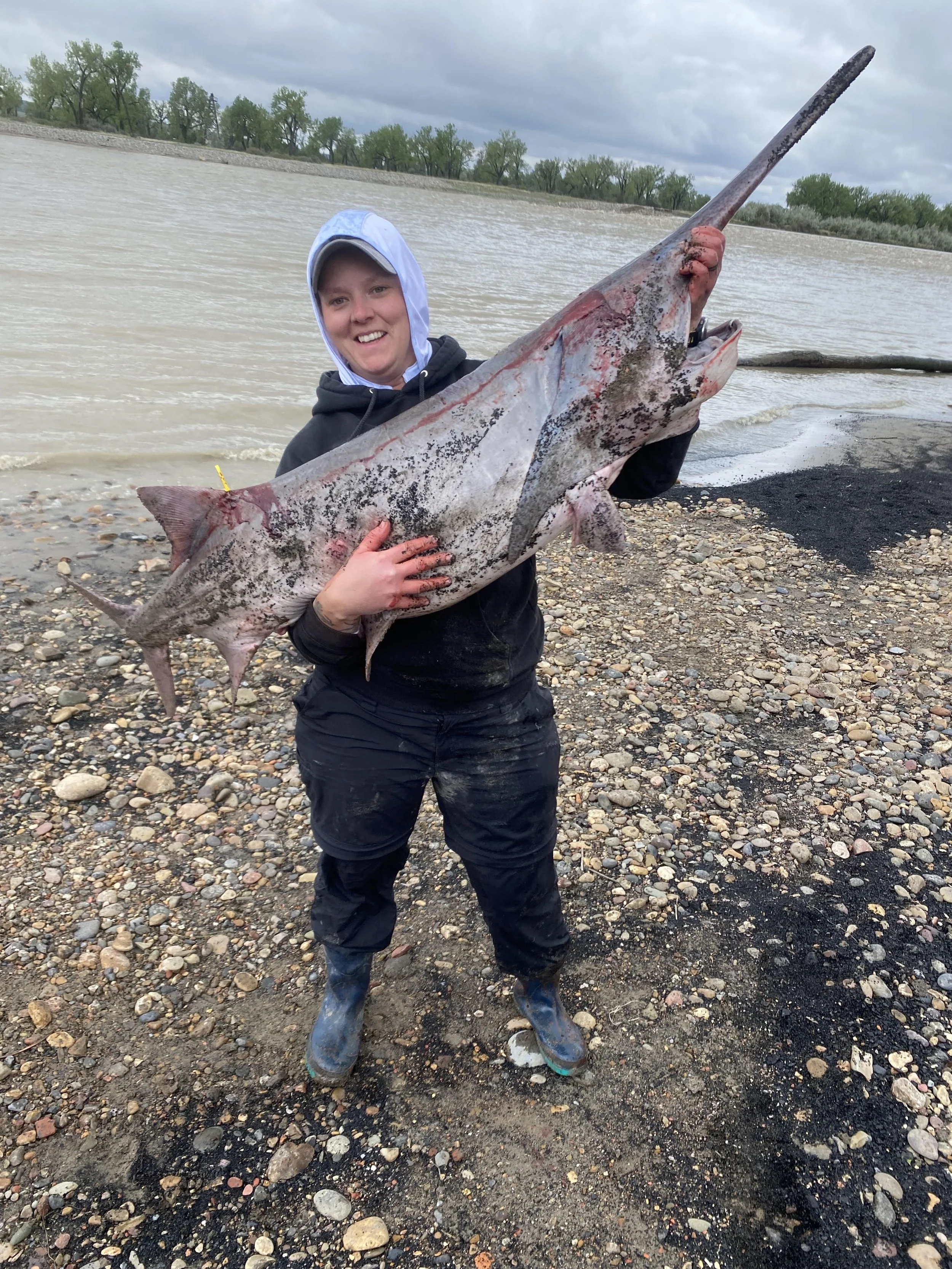I love spending my time working the summer for FWP cleaning paddlefish. During the summer months you can find me out at intake, on the river, or at the lake with my family.